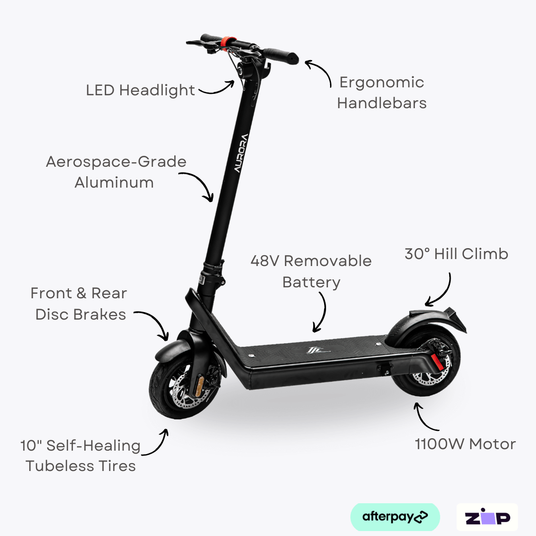 The Aurora combines 1100W of peak power, removable battery convenience, and 100km range—your ultimate companion for daily commuting.