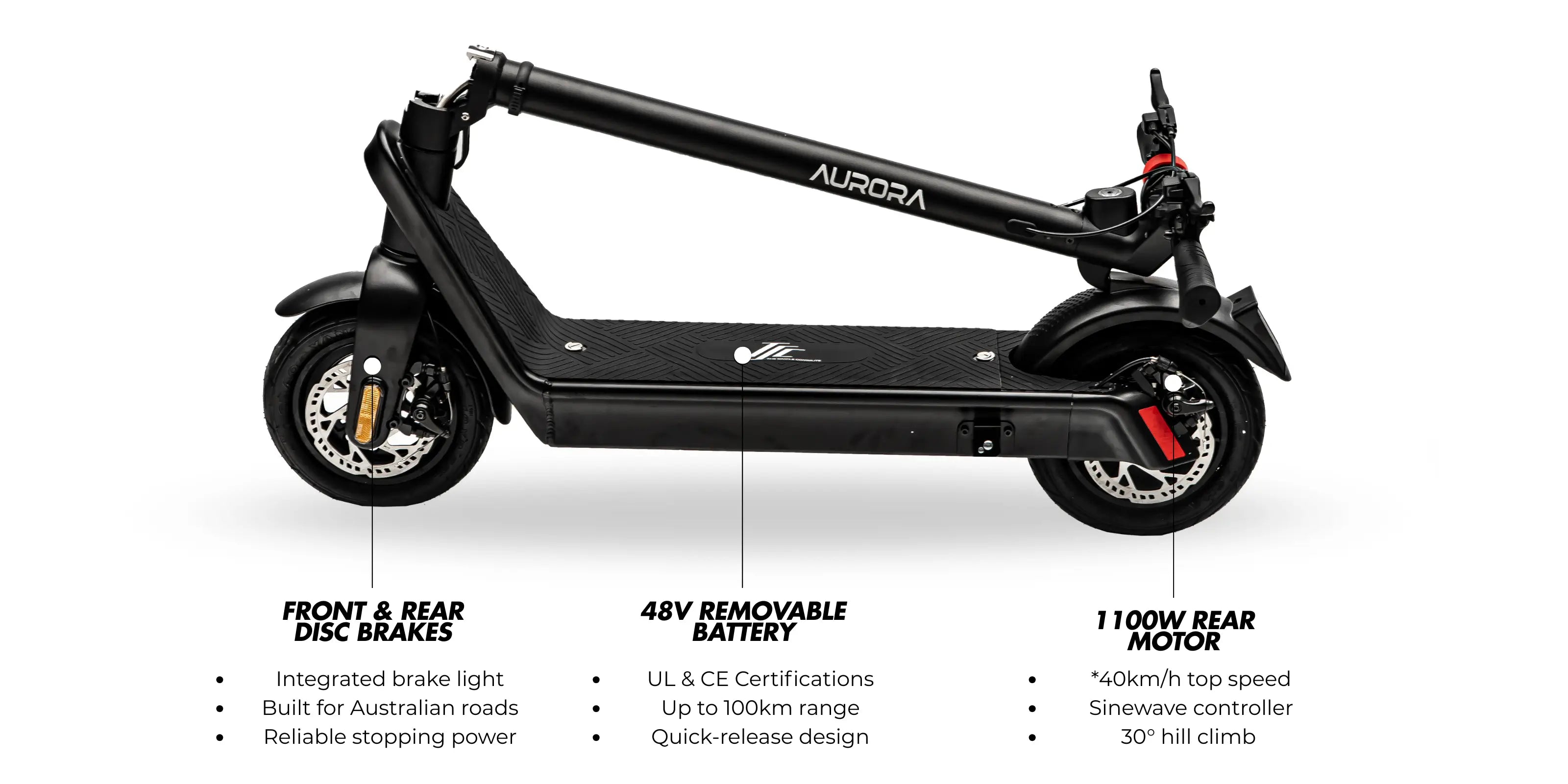 Stop buying compromises. Aurora is the one scooter that handles everything your commute throws at you—every day, every distance, every hill, every weather condition.